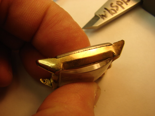 Elgin Case 10KGF with Stainless snap on back. Fits 8/0 mvt. Bezel has brassing. No holes in case. Email for more pics.