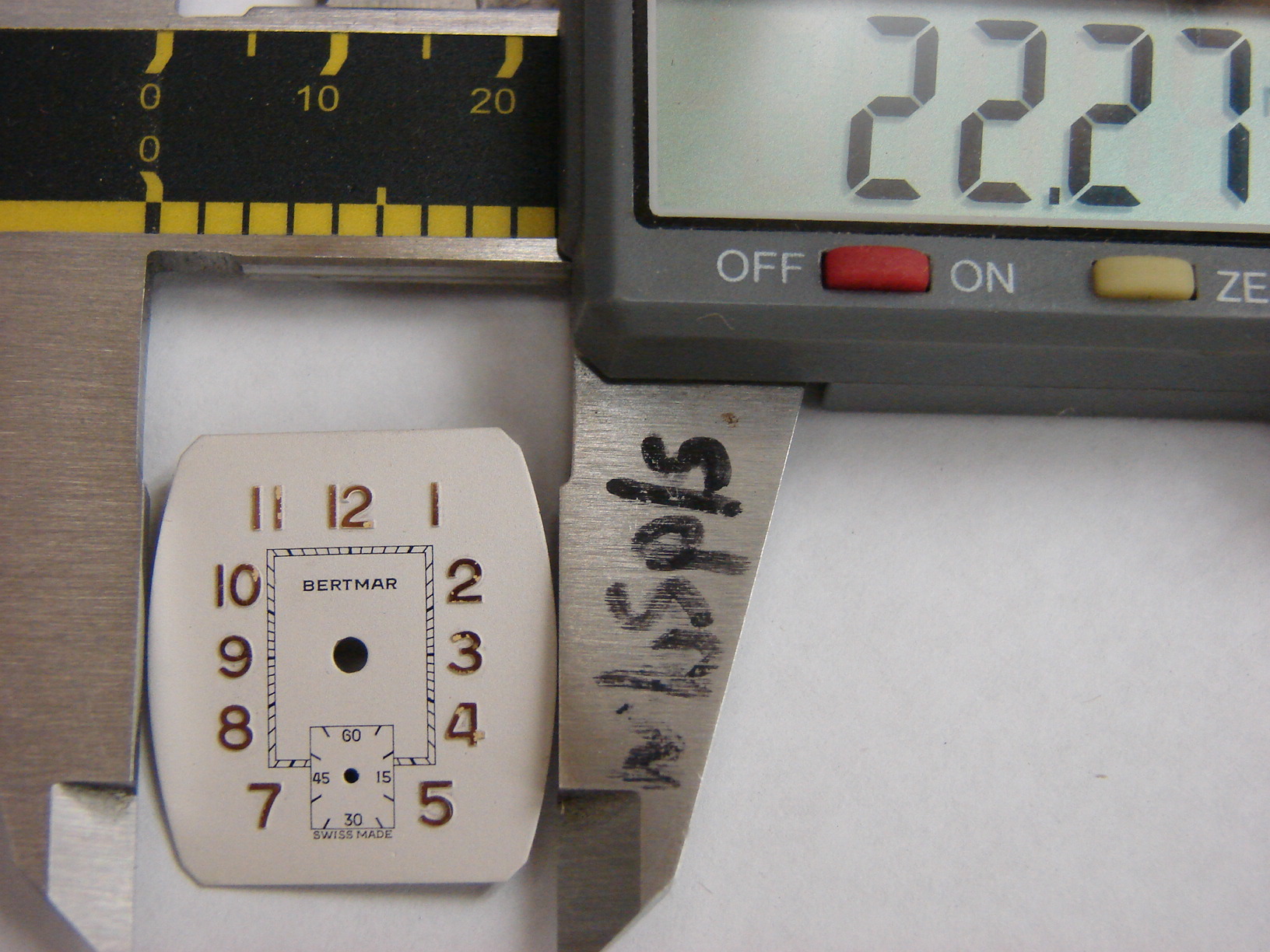 A Schild mvt dial fits AS 984 and others. Bertmar brand. Is for sub seconds mvt, cushion shape. see pics for dimms, style, color. new old stock.