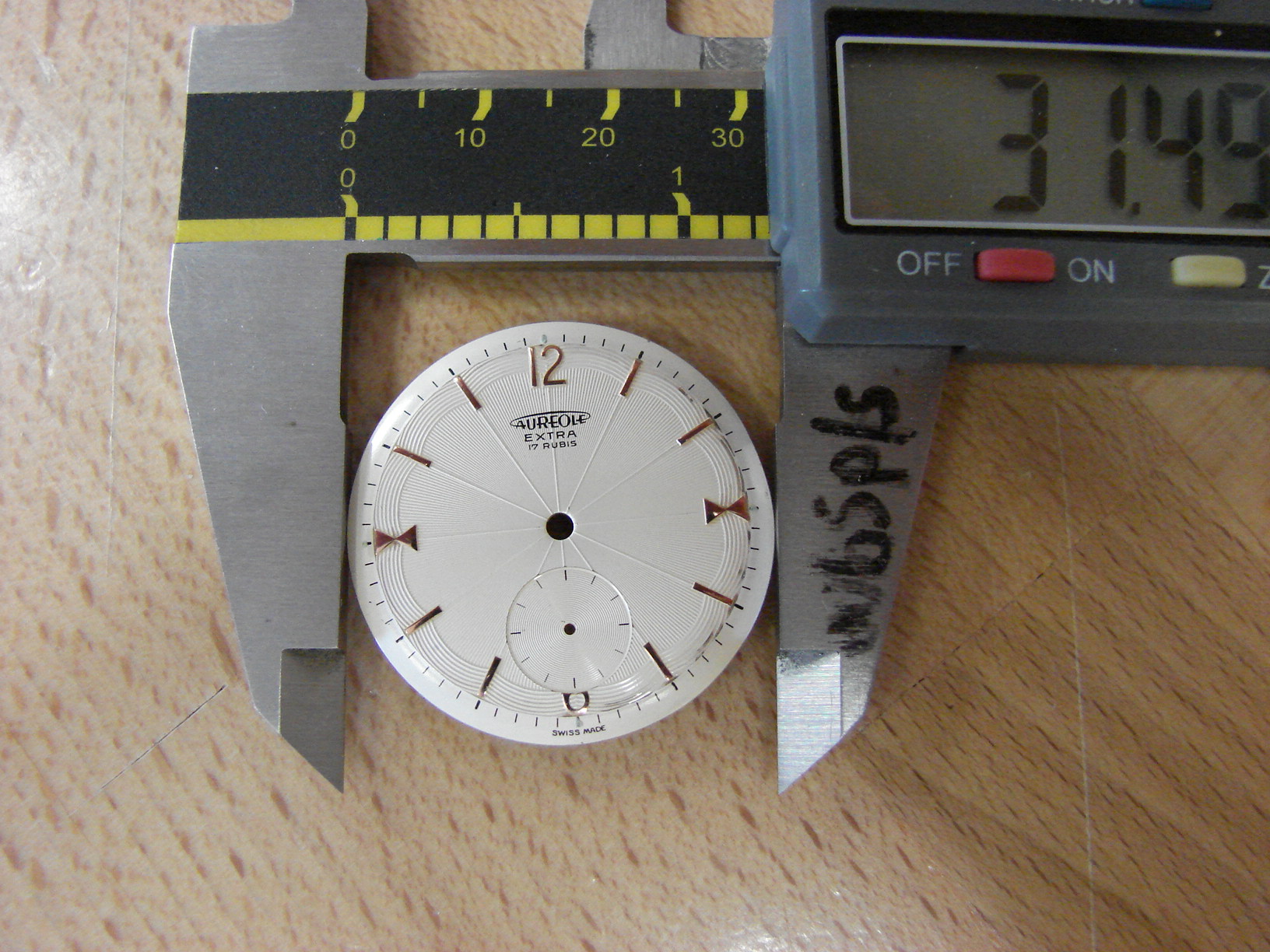 No Name dial #30953 fits AS 2066 day/date and possibly others. Is for sweep seconds mvt. see pics for dimms, style, color. More than one available new old stock.