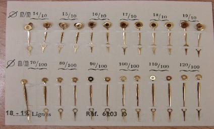 Pocket watch hands. High quality yellow gold plated steel hands. Swiss made from the 1930's or 1940's. Moon style. Picture shows a card of hands. We sell these a pair at a time. The hands are sold by pairs not the whole card. To get the pair you want just note the hole size and length you need when you check out. Paypal has a note section when you pay so just fill that info in when you pay. The hour hands have hole sizes as follows in MM 1.40, 1.50, 1.60, 1.70, 1.80, 1.90. Minute hand holes are .70, .80, .90, 1.00, 1.10, 1.20. Hour hand lengths are 14mm-15mm, minute hand lengths are 19.5mm-20.5mm. Note which hole size and length of each hand you want in the note section of the paypal payment when you pay. We have many of these hands so if you want more than one pair just change the quantity and note which hole and length you want.