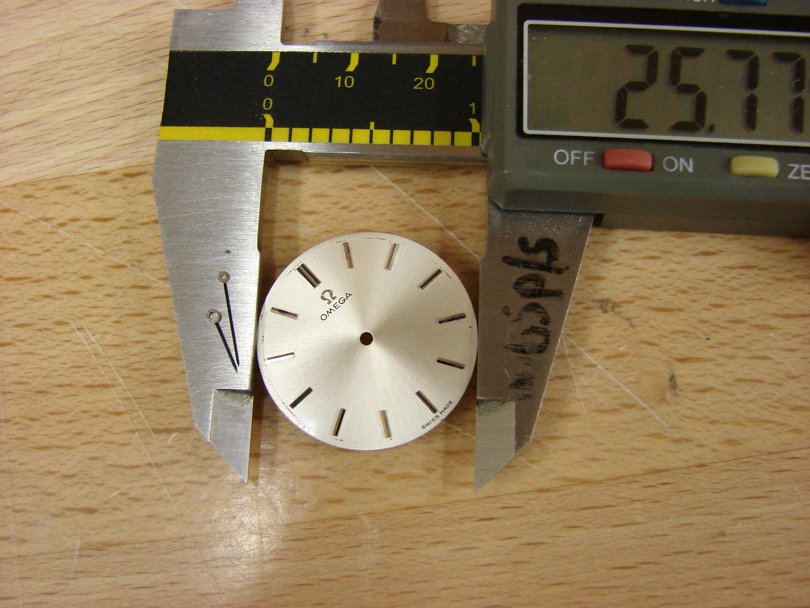 Omega ladies Deville diamond dial w/hands. Original genuine omega dial with it's original genuine hands. Super condition, from a case that was melted. Not sure of case number, but the dial fits caliber 1458